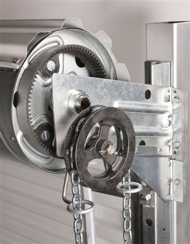 Complete replacement chain hoist assembly with the retro fit kit/bracket for the Janus Model 1000 door.